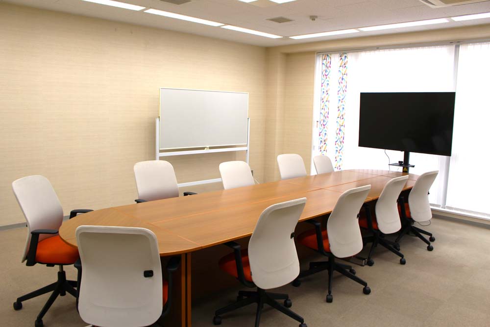 落ち着いた雰囲気の会議室を完備しています。日々の打ち合わせや重要な商談など、多目的に活用。常に清潔な状態を保ち、集中して議論できる環境を整えています。